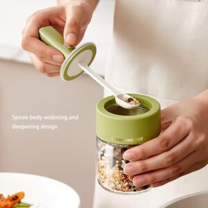 - ADJUSTABLE SPOON: Airtight condiment storage jar with lid and spoon. condiment dispensers with a telescopic spoon, height can be adjusted freely, and easy to use.