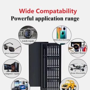 - Wide Application: 24 in 1 screwdriver set is designed for all popular iPad, iPhone, PC, watches, glasses, laptops, phones, game consoles, camera, host and more. With this kit, you can fix your electronic products or replace some accessories of them by yourself. This useful screwdriver set is a good choice for both professional and amateur. This kit is also a decent gift for your friends, family and colleagues.