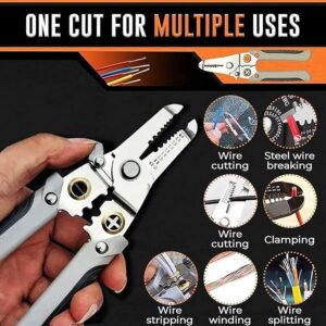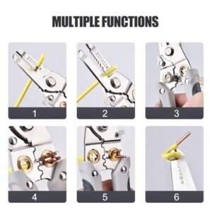 • Special Wire Stripper for Electrician :- This wire stripper integrates stripping, splitting, winding, cutting, clamping, and splitting into one, with powerful functions. It saves the operation of frequent tool replacement, which is convenient quick, & improves work efficiency. The crimping is fast and tight, which is more suitable for electronic and electrician maintenance work.