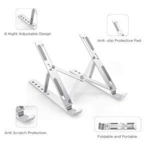 - Multi-Angle Adjustable Design: The Aluminium Laptop Stand Or Metal Laptop Stand Or Foldable Laptop Stand Or Better Known As A Aluminum Laptop Stand Provides 7-Speed Adjustable Height, Adjust To Comfortable Operating Angle And Height Based On Your Actual Need. And The Ergonomic Design Makes For Easy Watching And Typing, Relieving Neck, Shoulder And Spinal Pain.