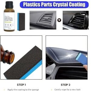- Plastic Parts Crystal Coating:Our coating formula is gentle and safe for your plastic parts, trim, and paint. Simply apply the car plastic plating refurbishing agent to a sponge and gently wipe it onto your car’s plastic parts to bring them back to life.