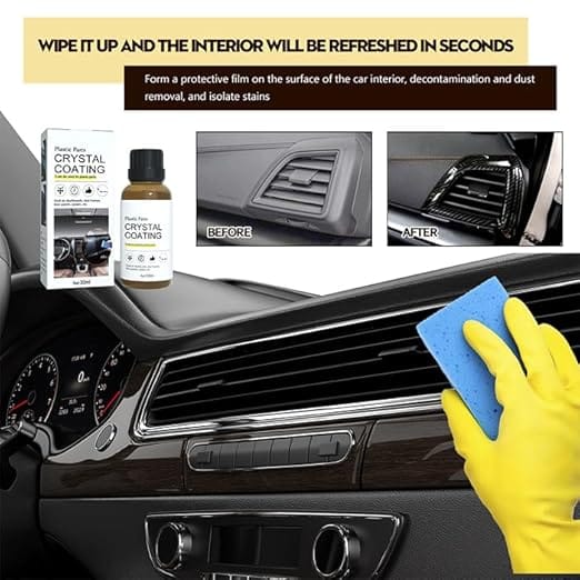 - Fast and Easy to Use:Plastic Parts Crystal Coating can penetrate into material pores, gently rub it, instantly black and shiny, increase surface gloss, delay aging, the luster is exquisite, and the luster is restored, and easily wipe off dirt without damaging the surface.