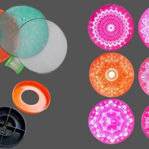 - Complete Rangoli Set: The Magic Rangoli Box includes two 4-inch printed jalis, one 4-inch plain jali, a filter for precise application, and a compact and convenient storage box.