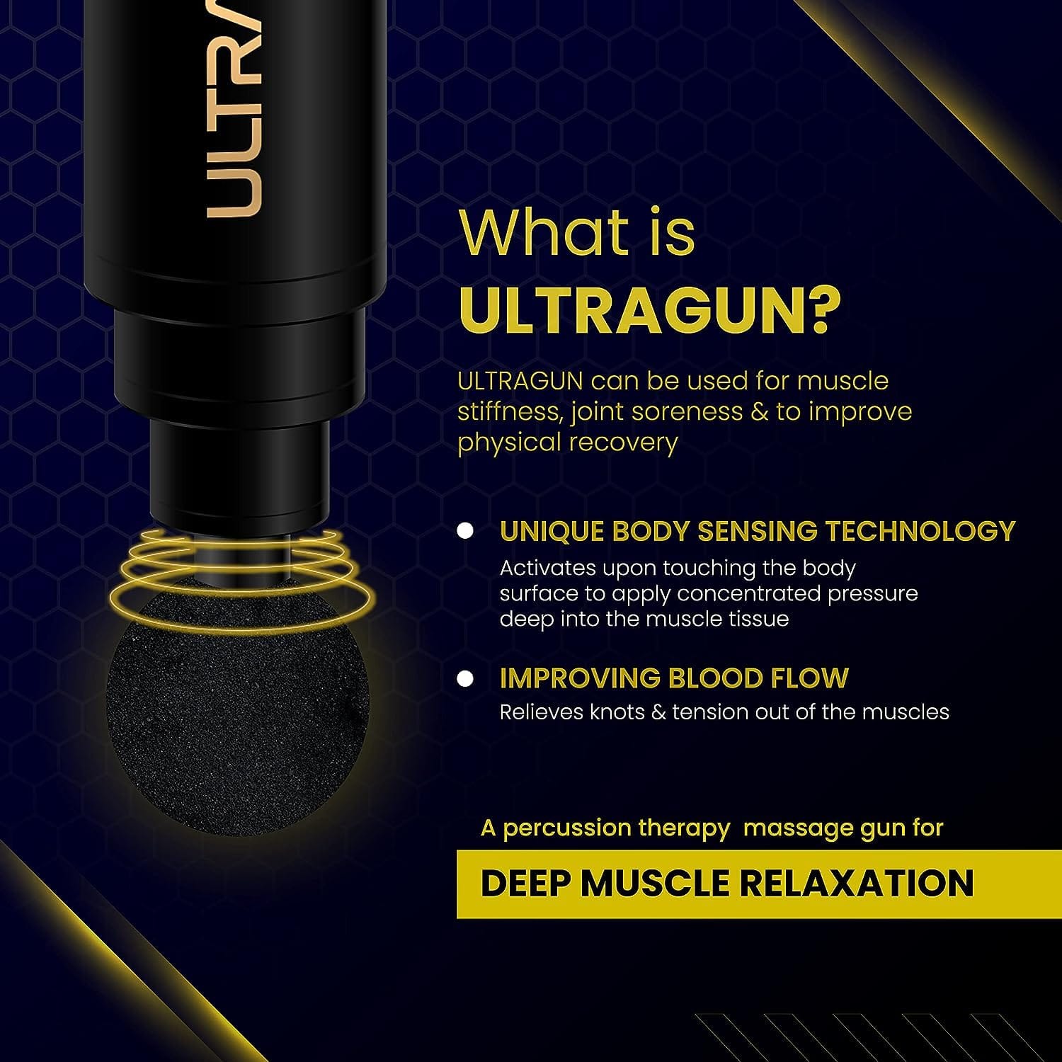 • UltraGun has a lithium-Ion battery which can last upto 5 hours, it is swift rechargeable and can be easily powered up via a USB port – allowing quick and simple access to the device’s charging.