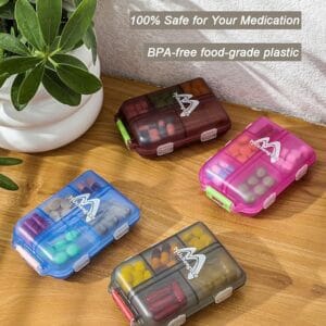 - PORTABLE SIZE & FOR TRAVELING: Size of this portable pill box is 4.33×3.54×1.2 inch, can be easily put in your purse, suitcase, backpack, handbag, or your coat pocket, without taking up space, very convenient for a trip!