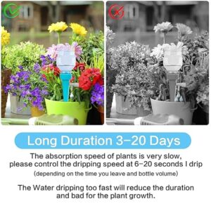 - Automatic watering set: you just need to insert the spikes into the soil and adjust the drip speed so that the flower pot bottom stays moist all the time. And we will have a long needle as a gift part.