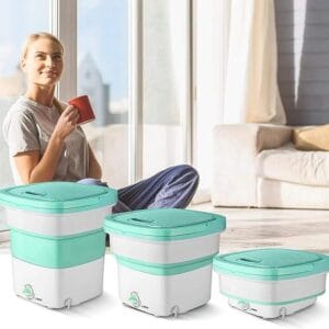 - Foldable bucket type is convenenient to use and to store; Can be hung on the walls of toilets and balconies or folded in cabinets; It’s an indepdent washing machine which is easy to use; Perfect for use in Camping, Apartments, Dorms, RV and Business Trip!