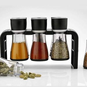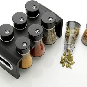 - Material : Pure Abs Plastic, Color : Black Cap, Content : 6 Jar Spice Rack, Suitable For: Masalas, Spice Storage, Dry Fruit Storage And Other Stuff