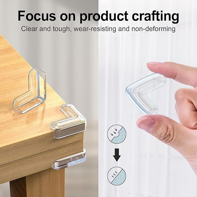 - You can use it onto sharp edged of tables, dressers, bed framers around the house. It is made of super soft material and is extra thick. It is easy to stick and can be installed on all surfaces like wood, glass etc.