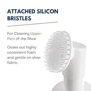 - User Friendly: shoe cleaner foam spray comes with an attached silicone bristle brush which on pumping generates a foaming solution that helps in cleaning the shoe. Thus, avoiding the usage of water and giving a experience.