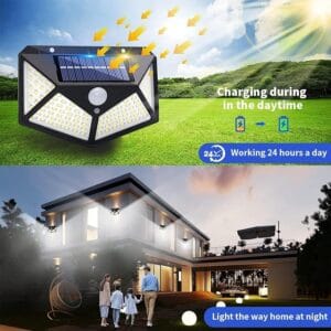 - ADVANCED SOLAR TECHNOLOGY: The GIGAWATTS Solar Wall Light 100 LED utilizes cutting-edge solar technology, harnessing sunlight efficiently to power its 100 LED lights throughout the night. Its high-efficiency solar panel converts sunlight into electricity, ensuring reliable performance and sustainability.