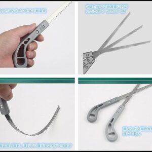 - This pruning saw has teeth for quick and accurate cutting of wood. Multi-functional saw, easy to use, high-quality SK5 steel, unique teeth polishing process, improved durability. Ergonomically designed rubber handle fits naturally in your hand, so the saw won’t easily fall off when trimming branches, and it will remain stable during the sawing process.