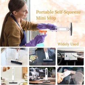 Mini Mop for Kitchen with 2 Sponges Portable Mini Mop Self Squeeze Strong Absorbent Magic Wiper